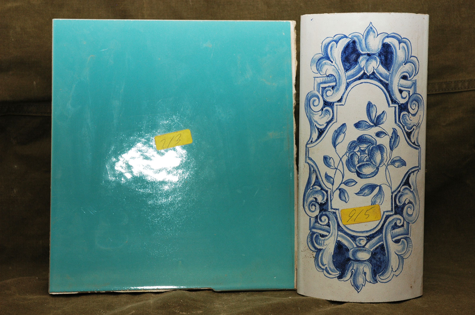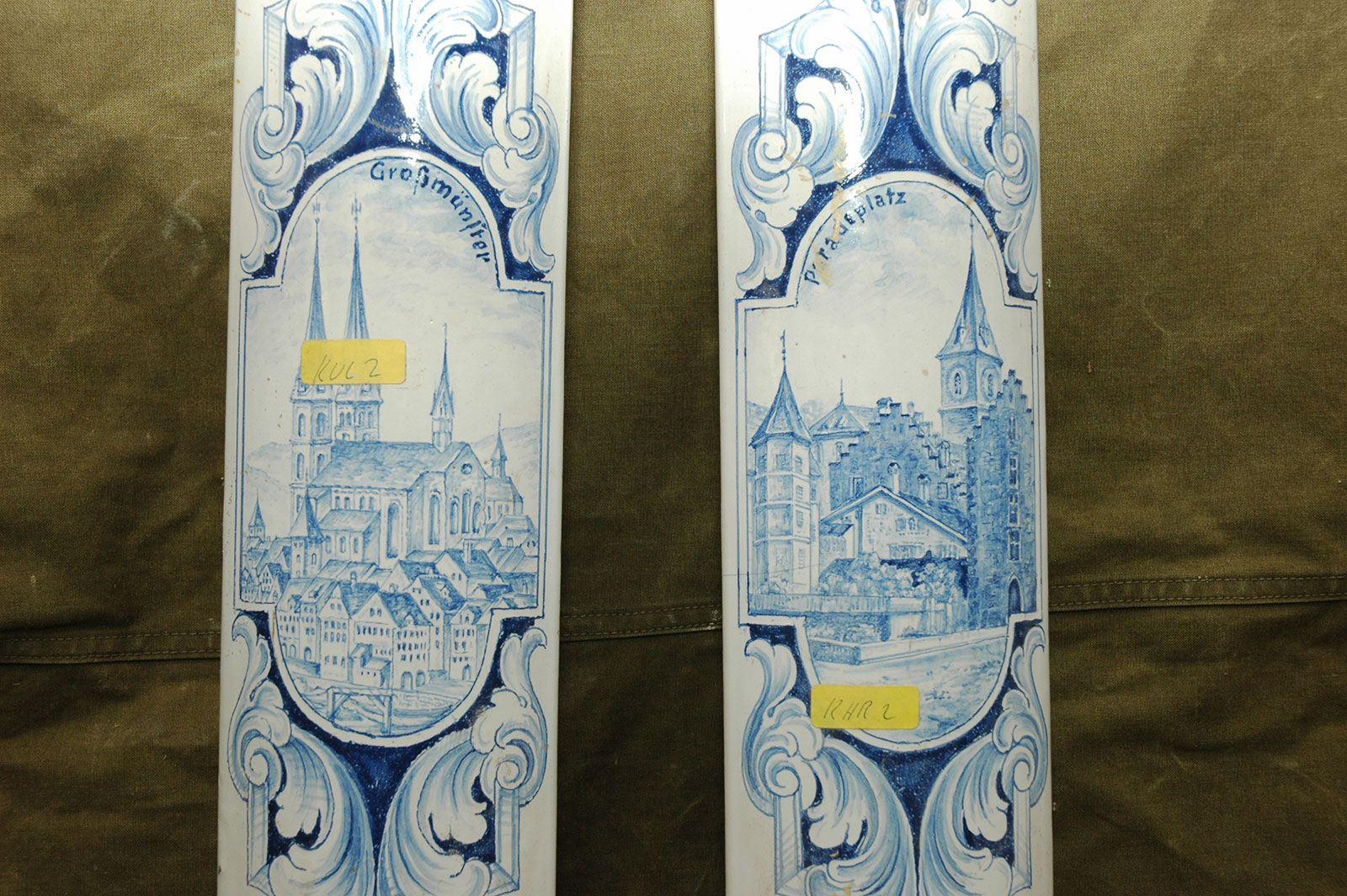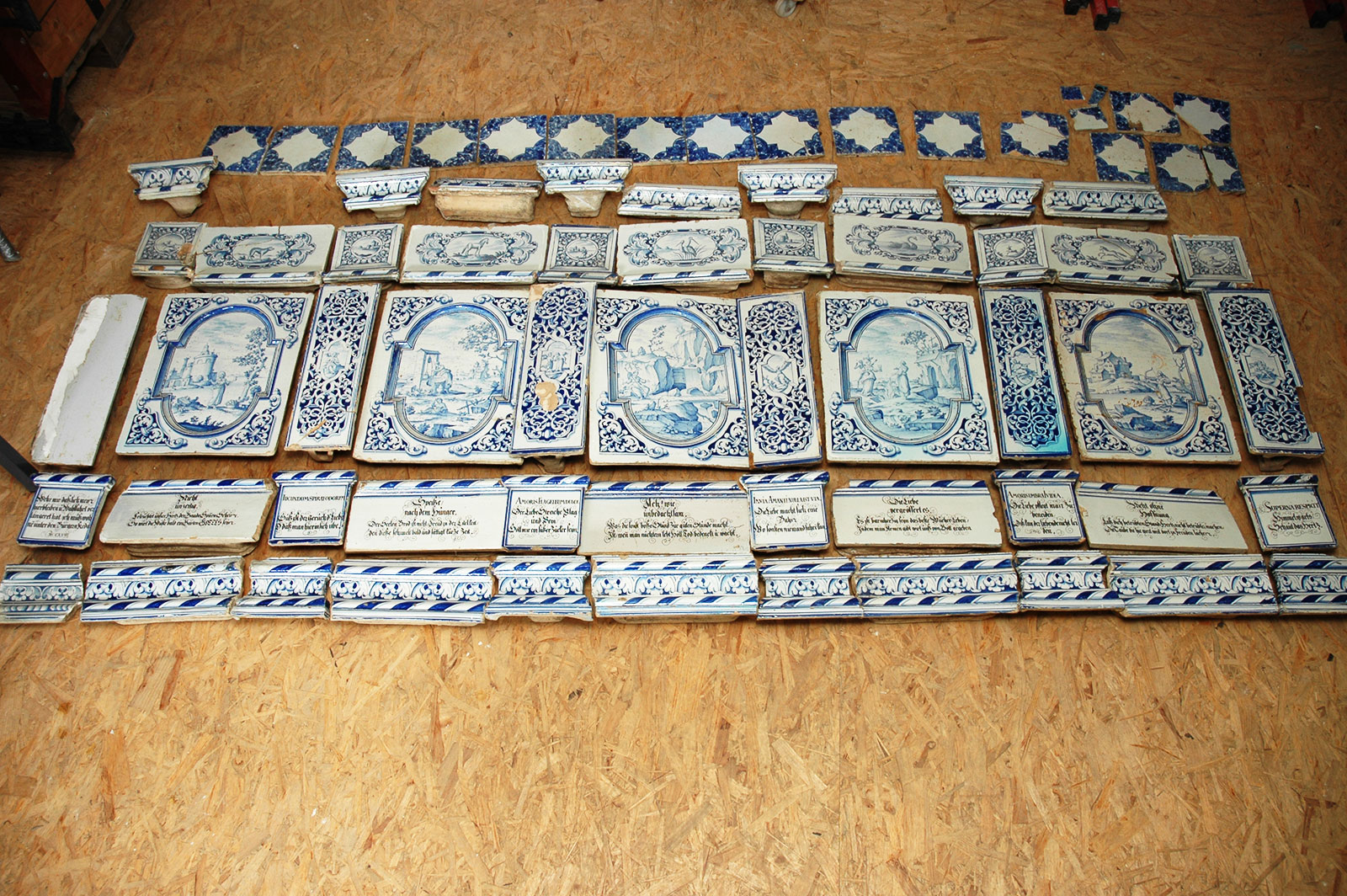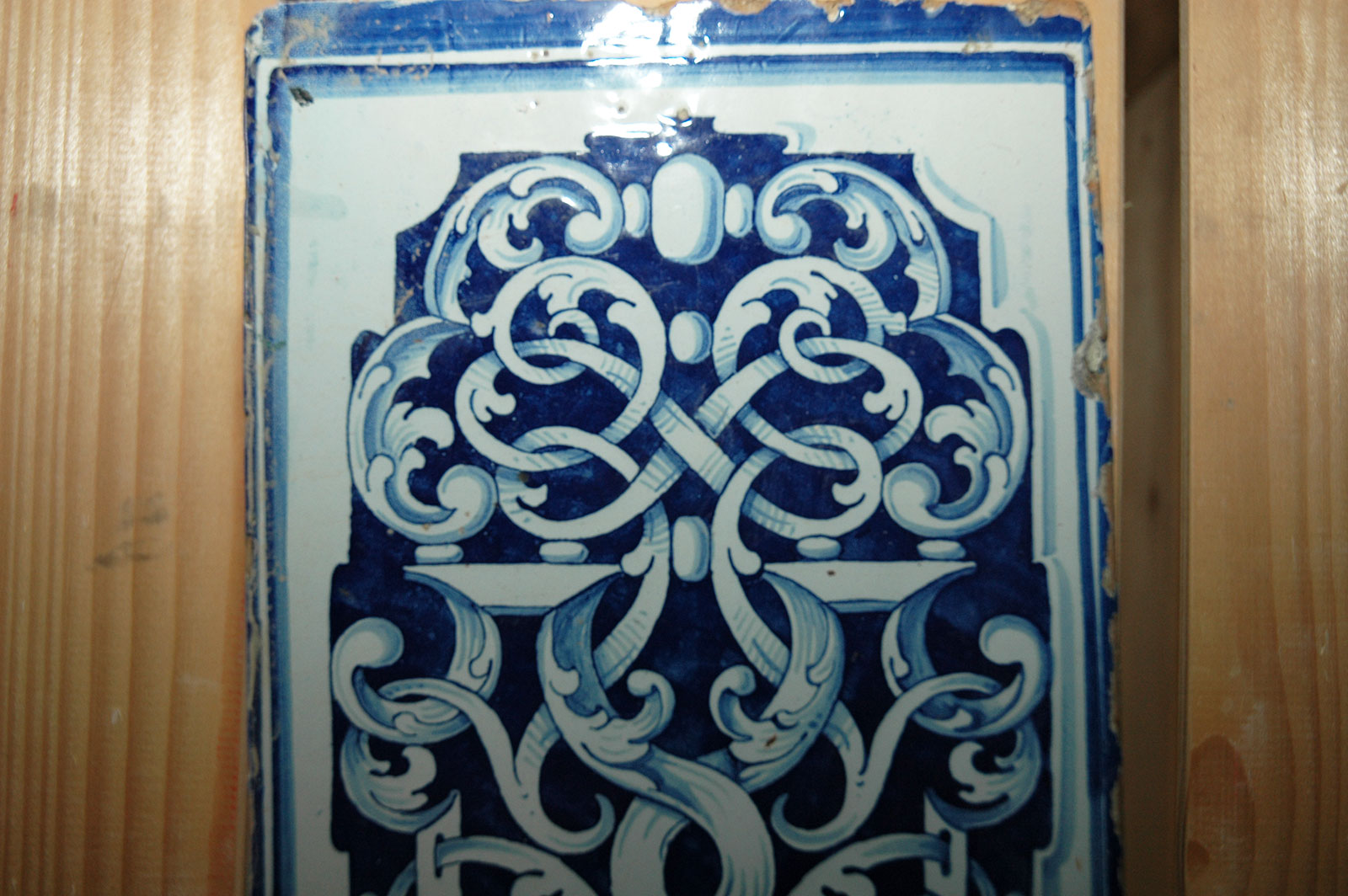 Cheminée Verkeidung aus blau-weiss bemalten Kacheln 19. Jh.