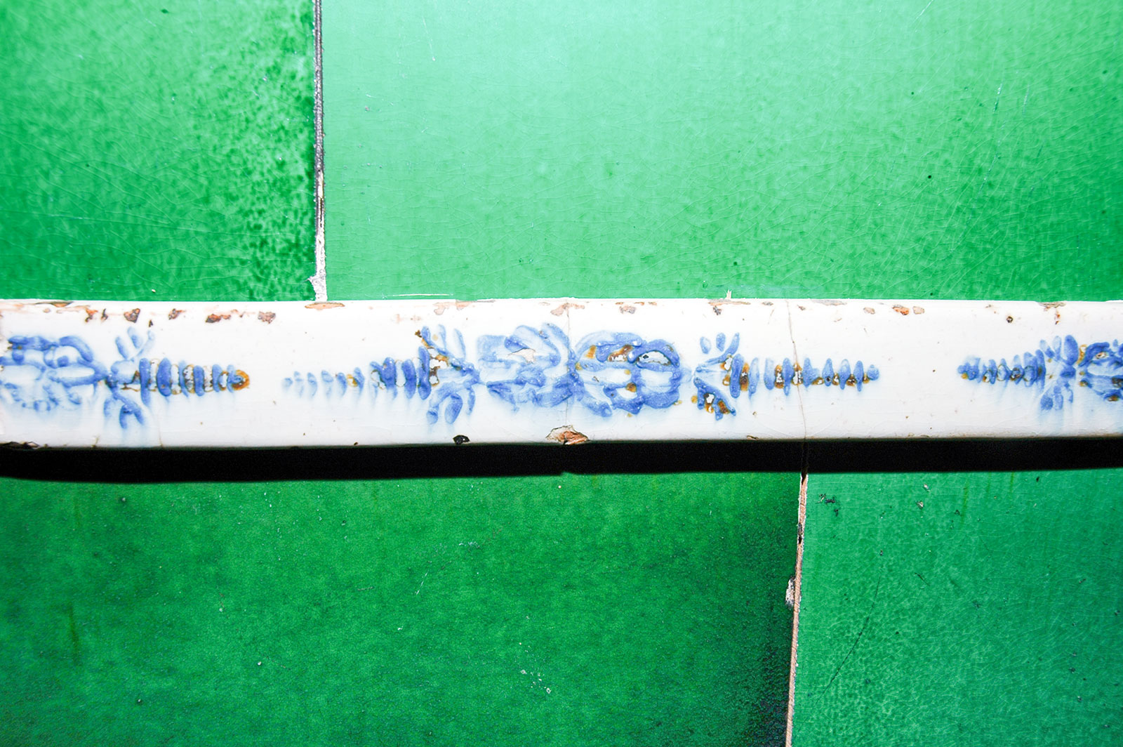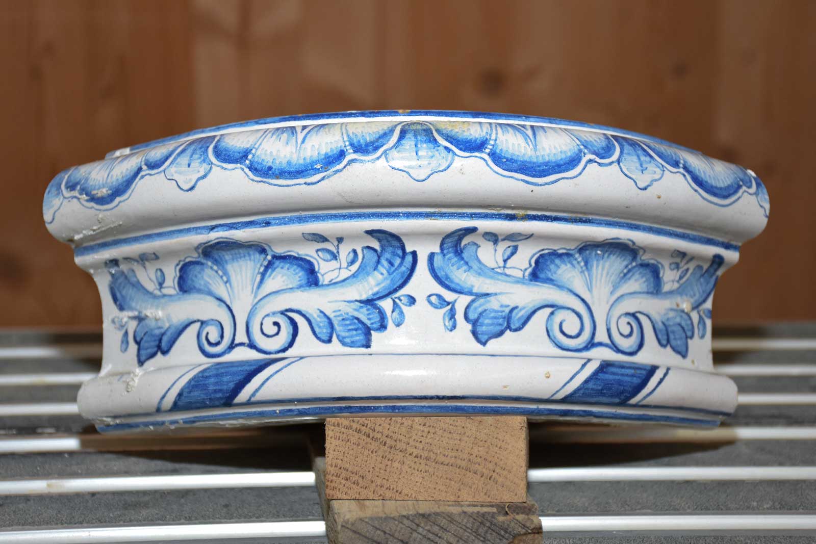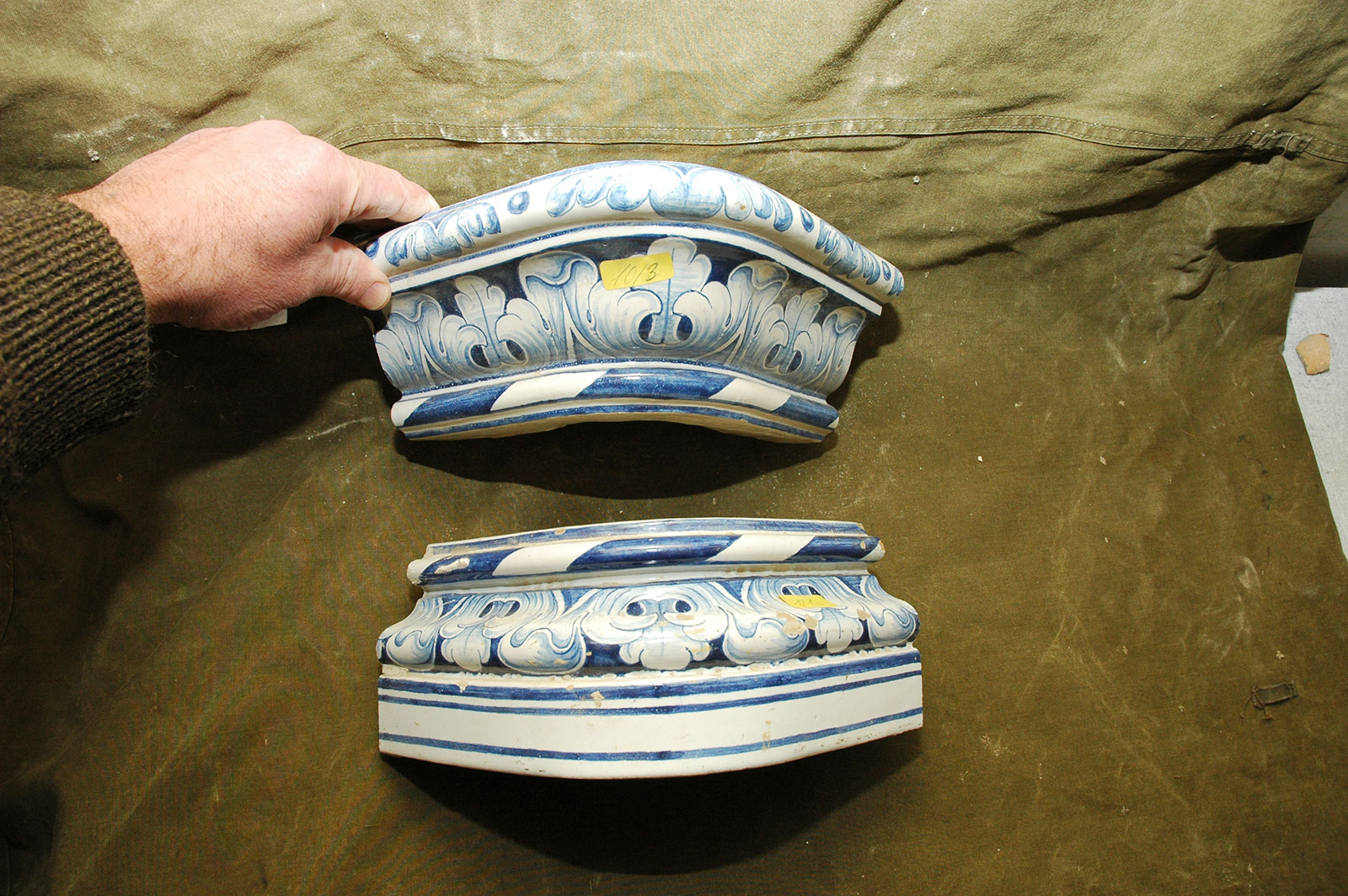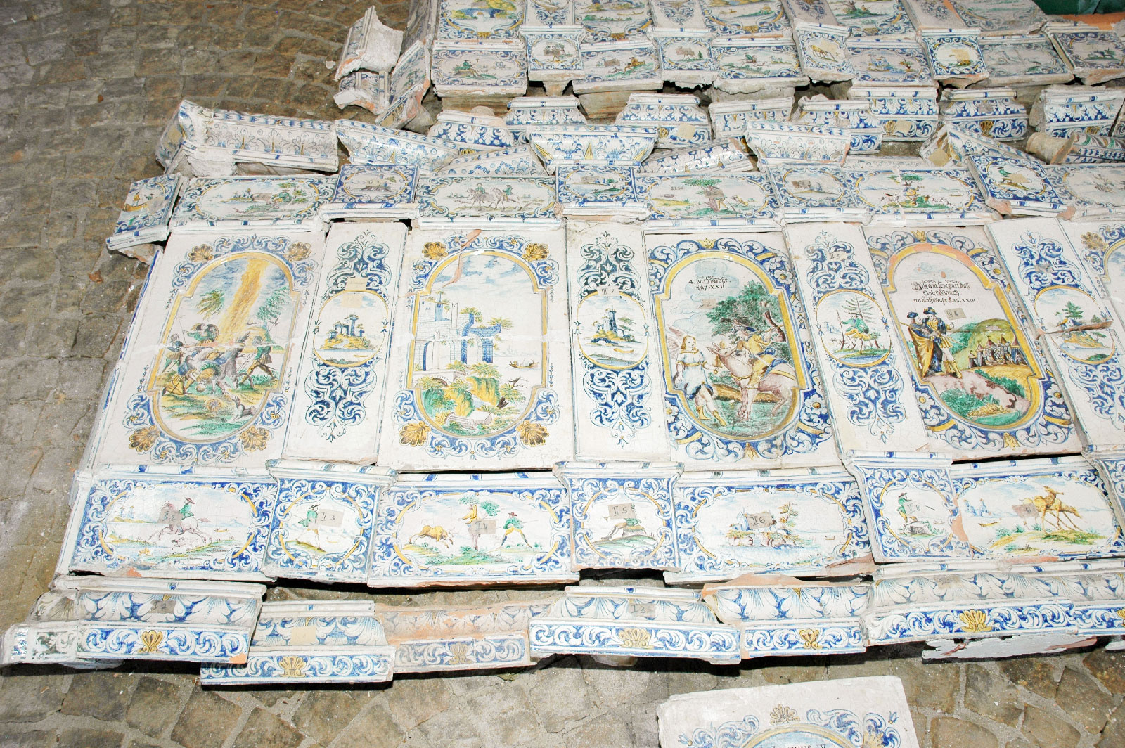 Cheminée Verkeidung aus blau-weiss bemalten Kacheln 19. Jh.