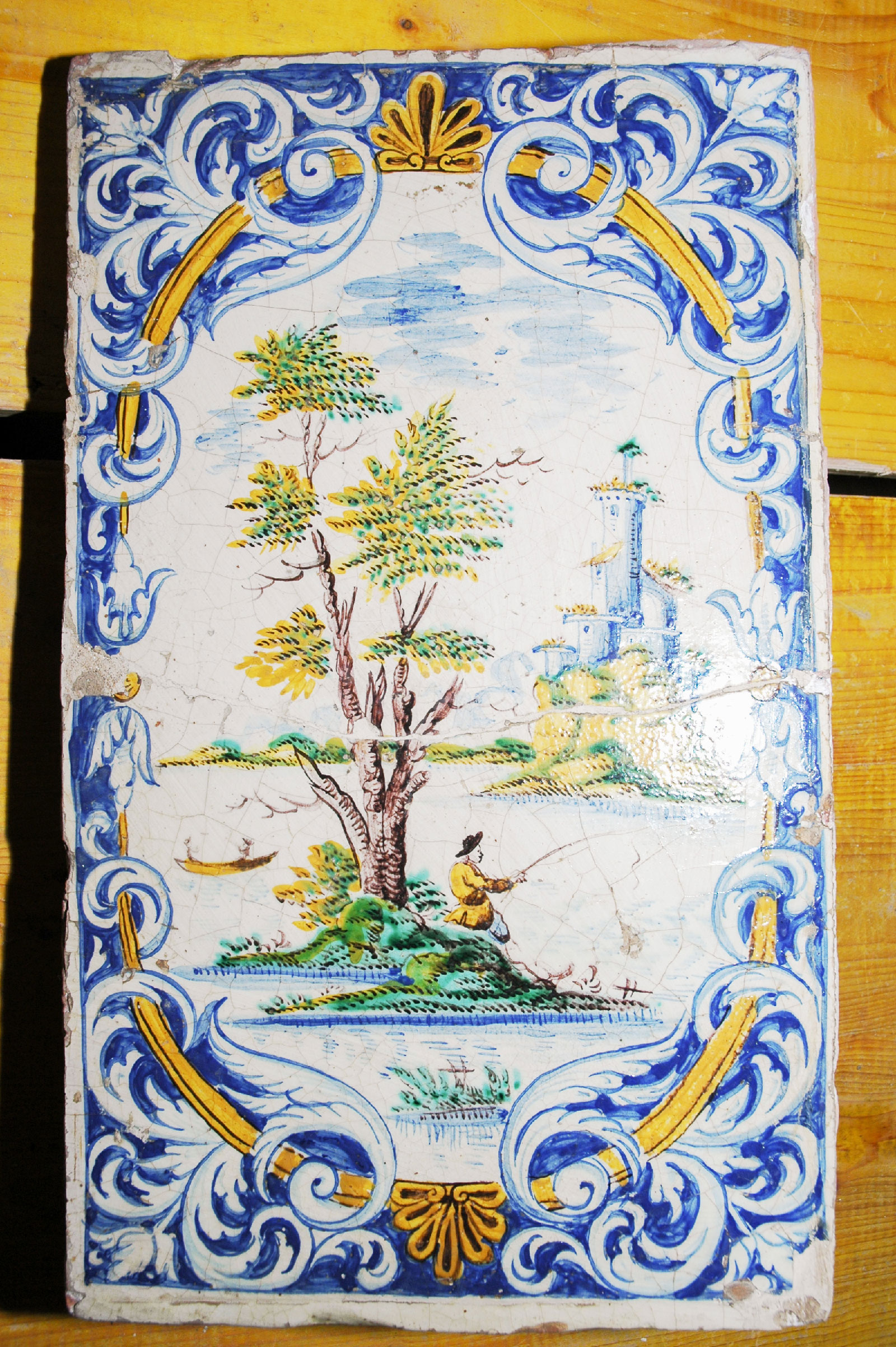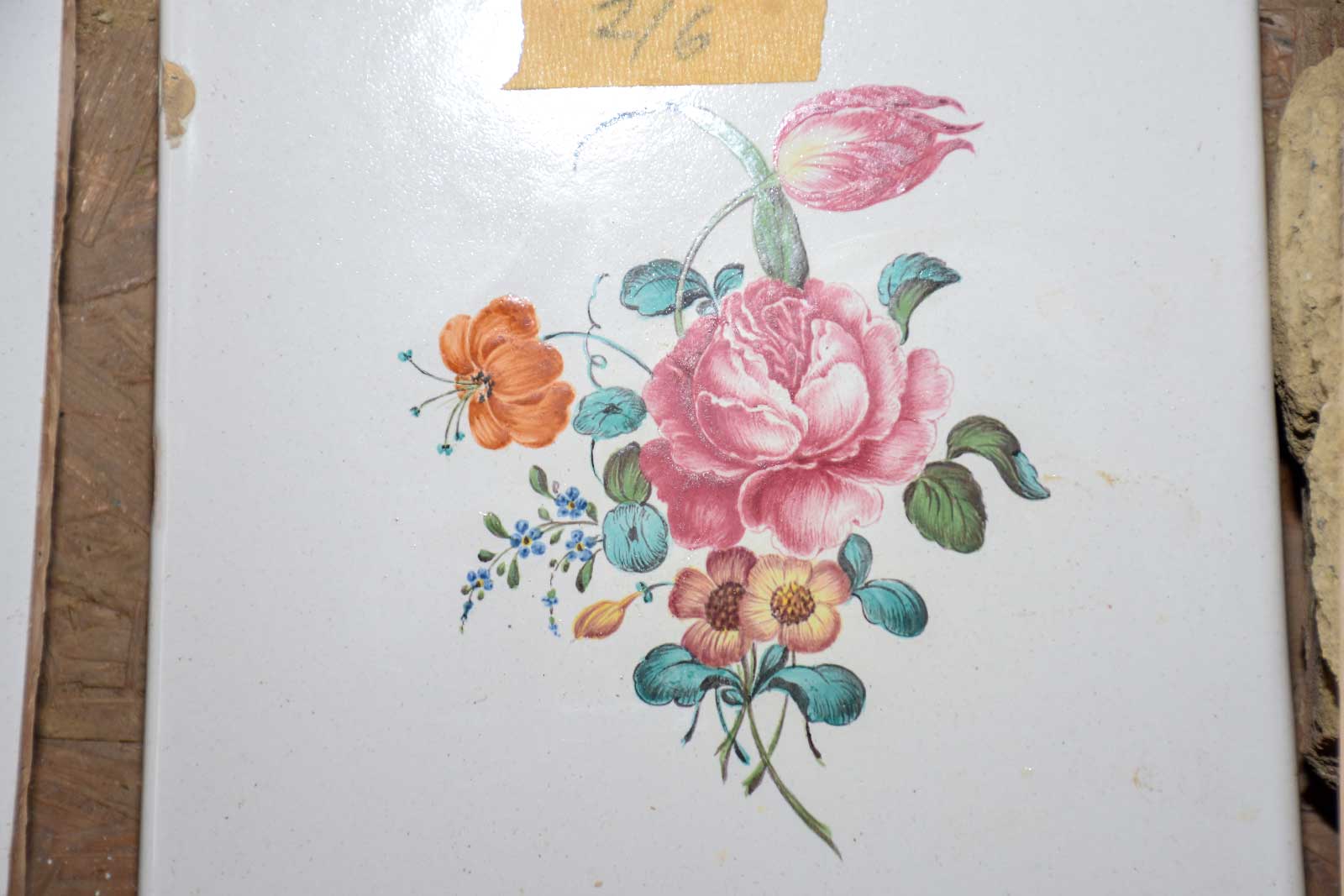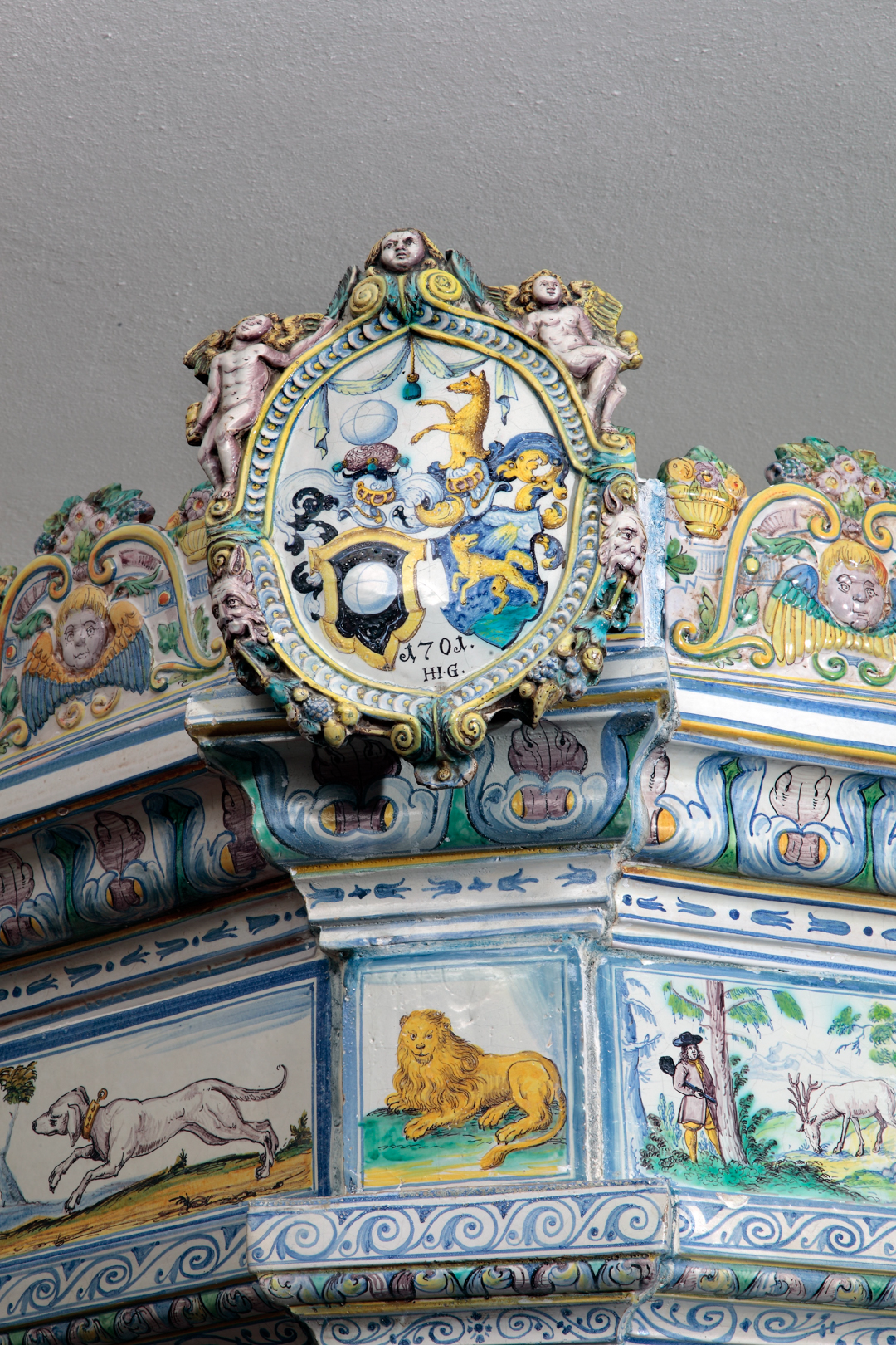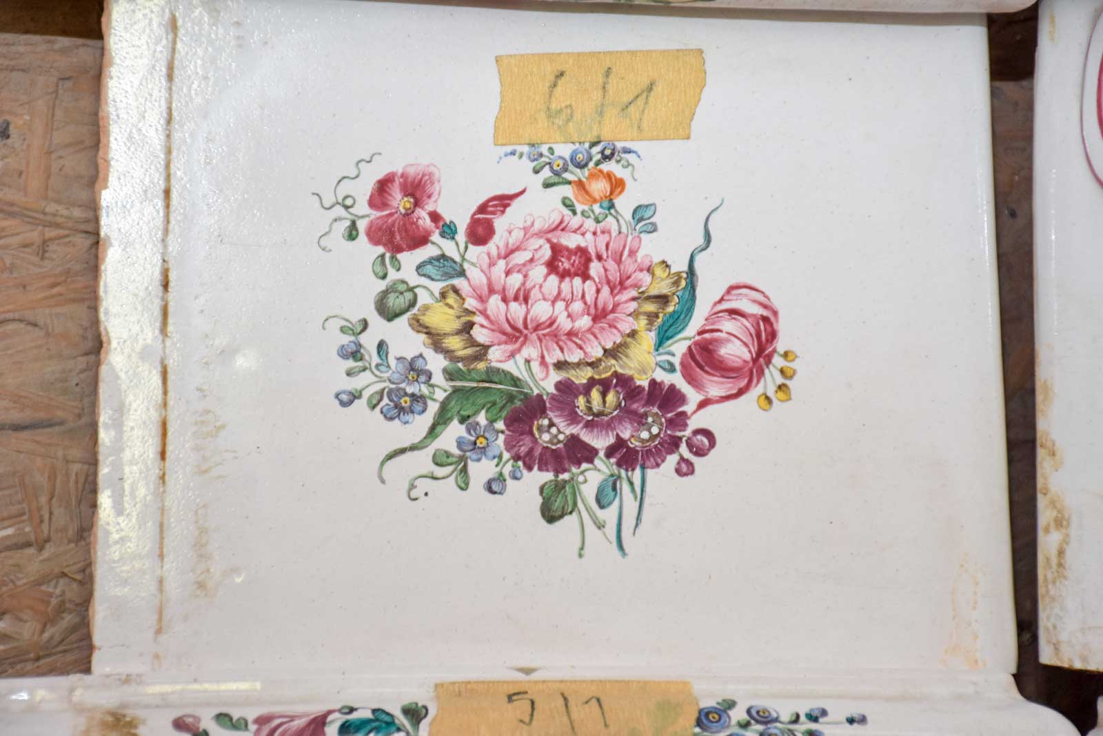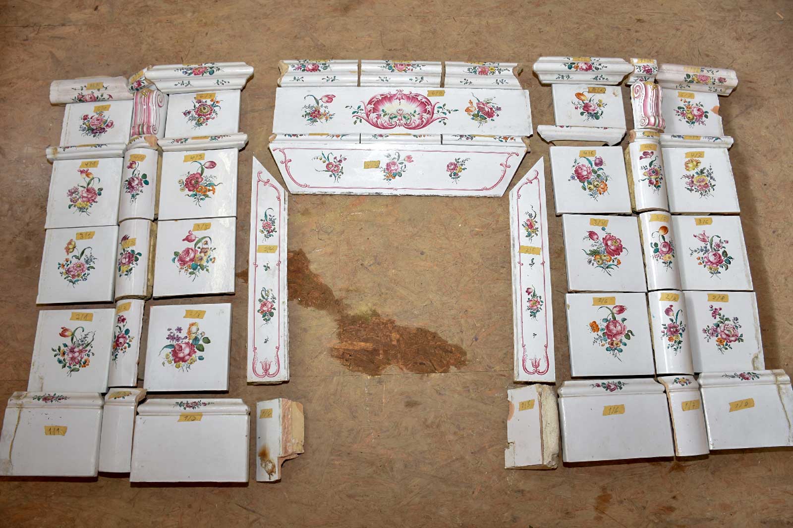 Cheminée Verkeidung aus polychrom bemalten Kacheln 19. Jh.