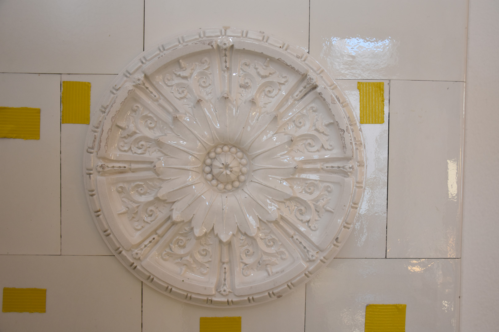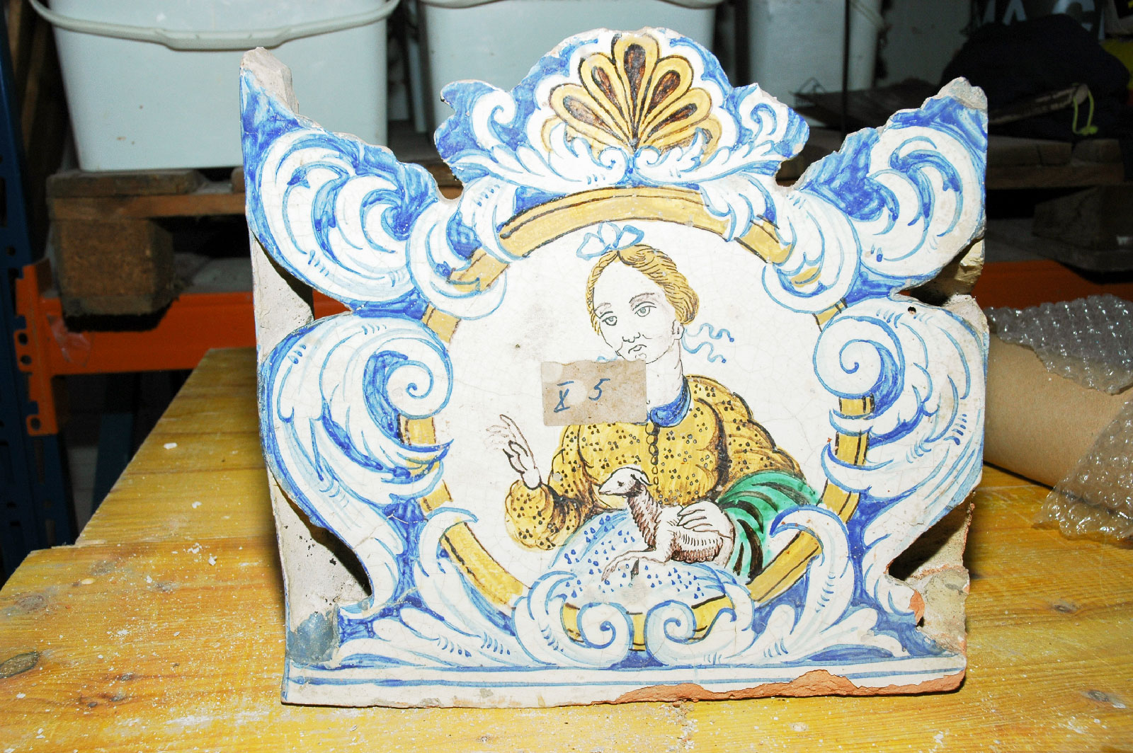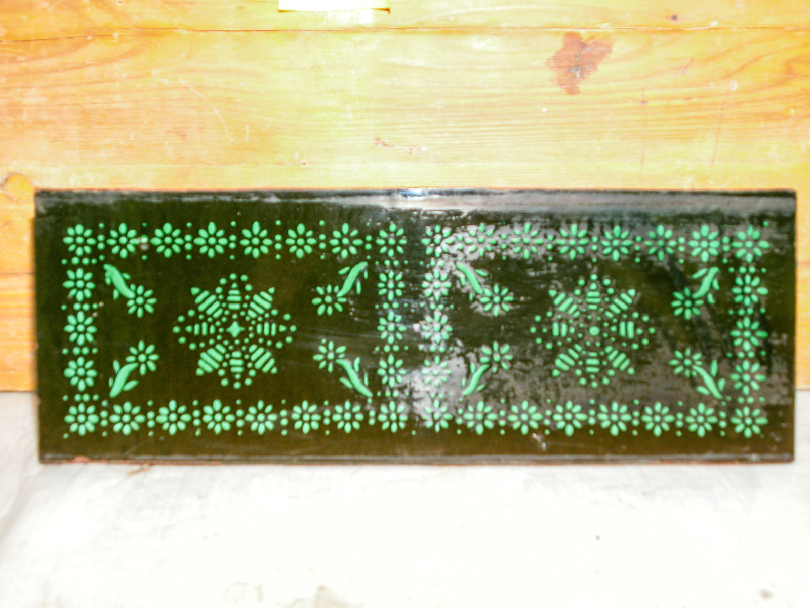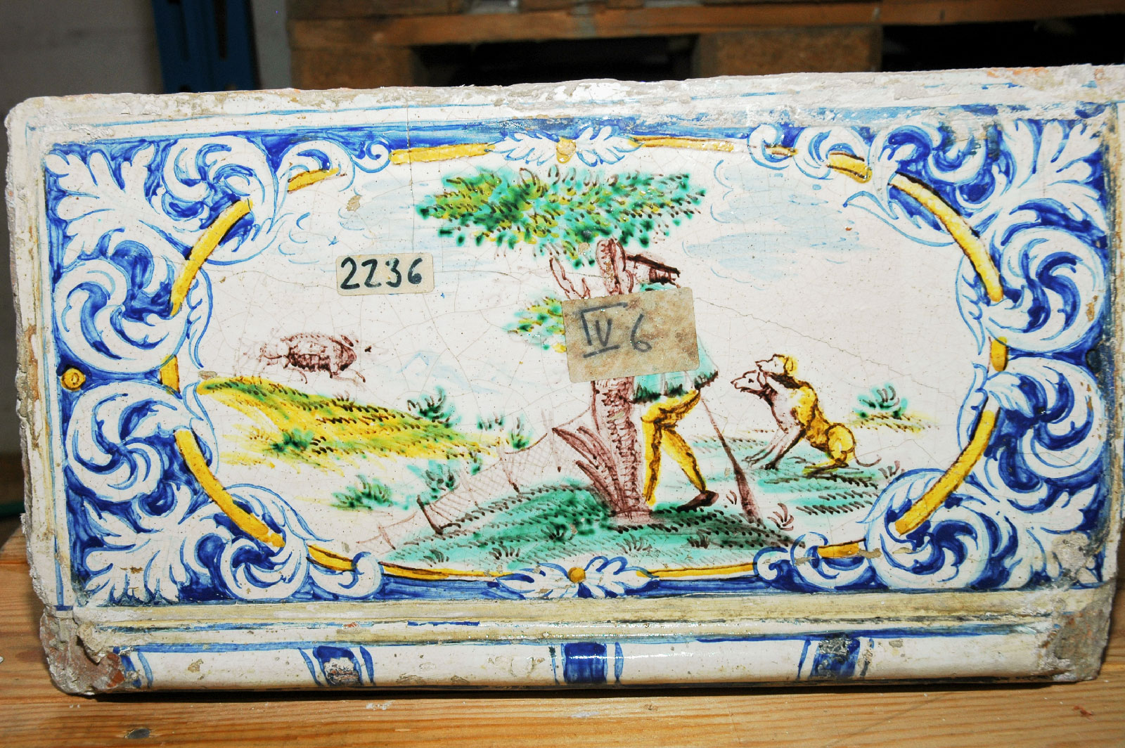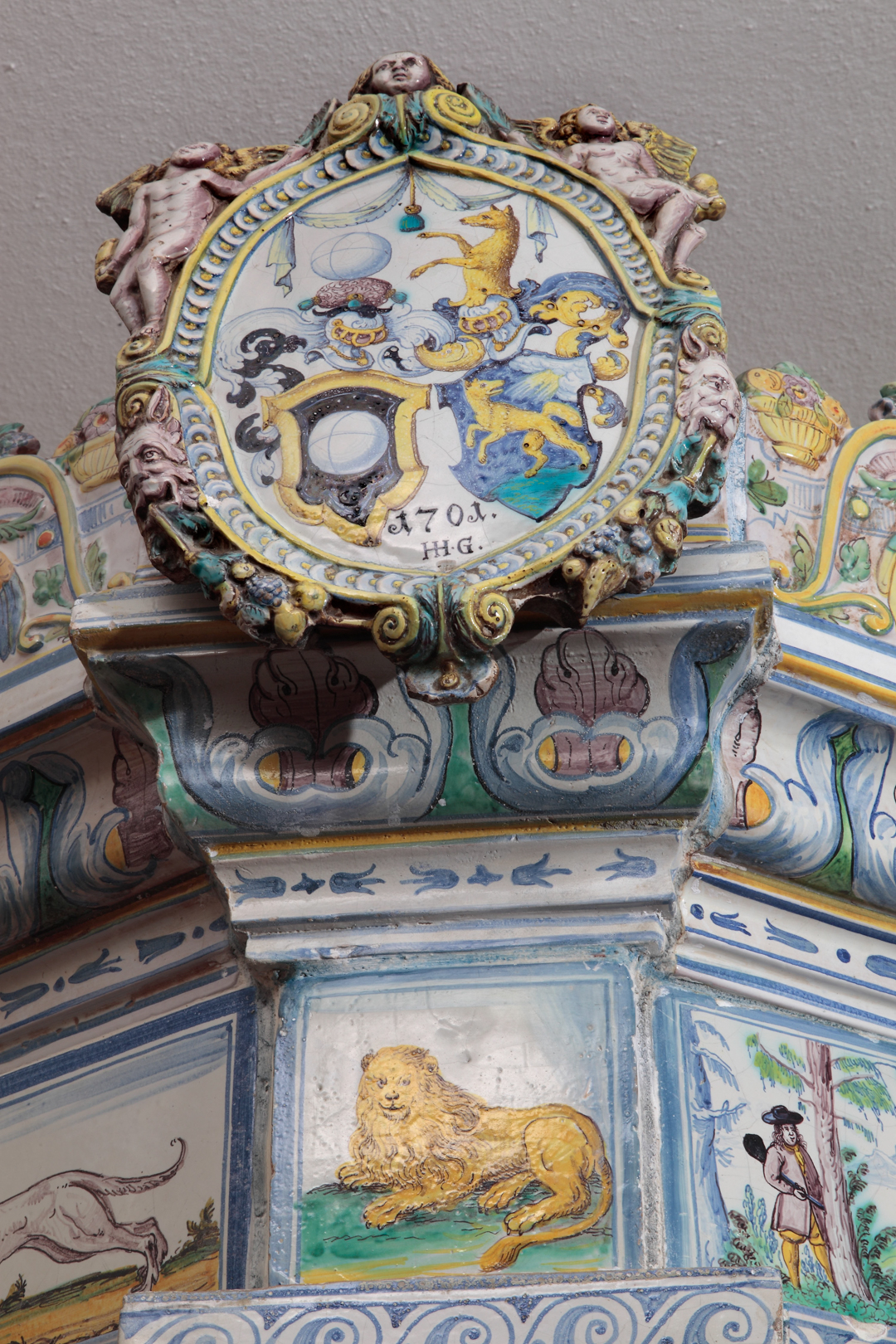 Cheminée Verkeidung aus polychrom bemalten Kacheln 19. Jh.