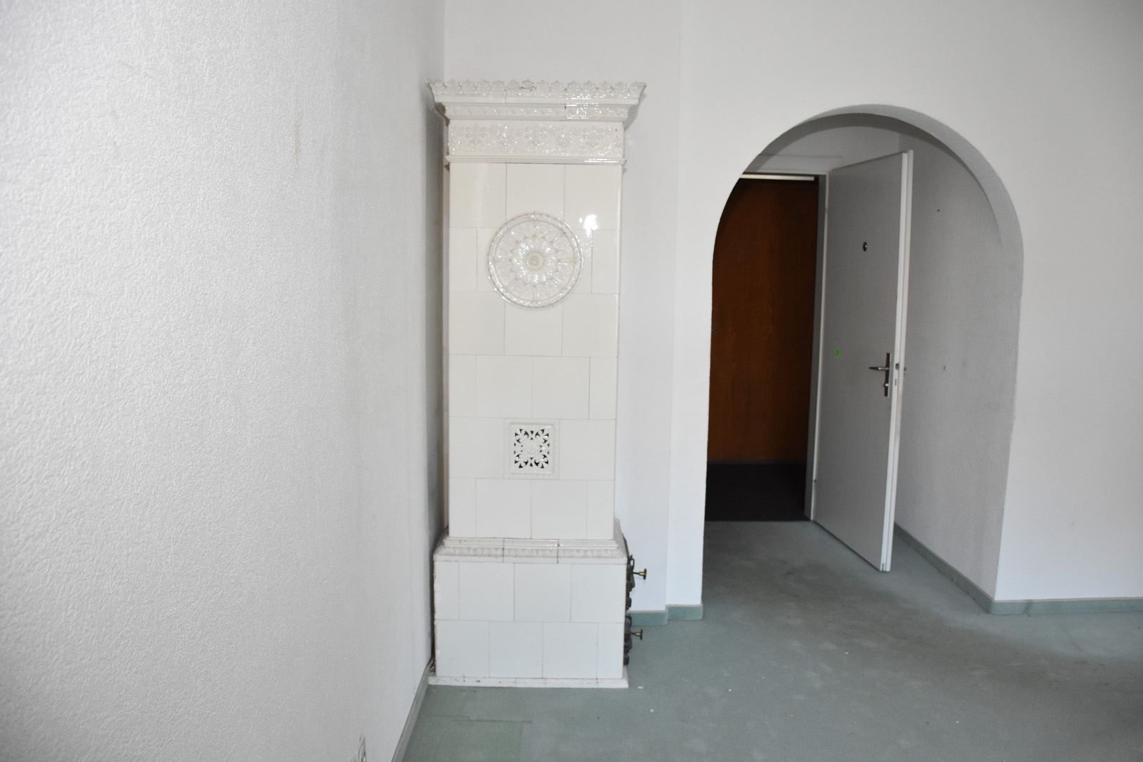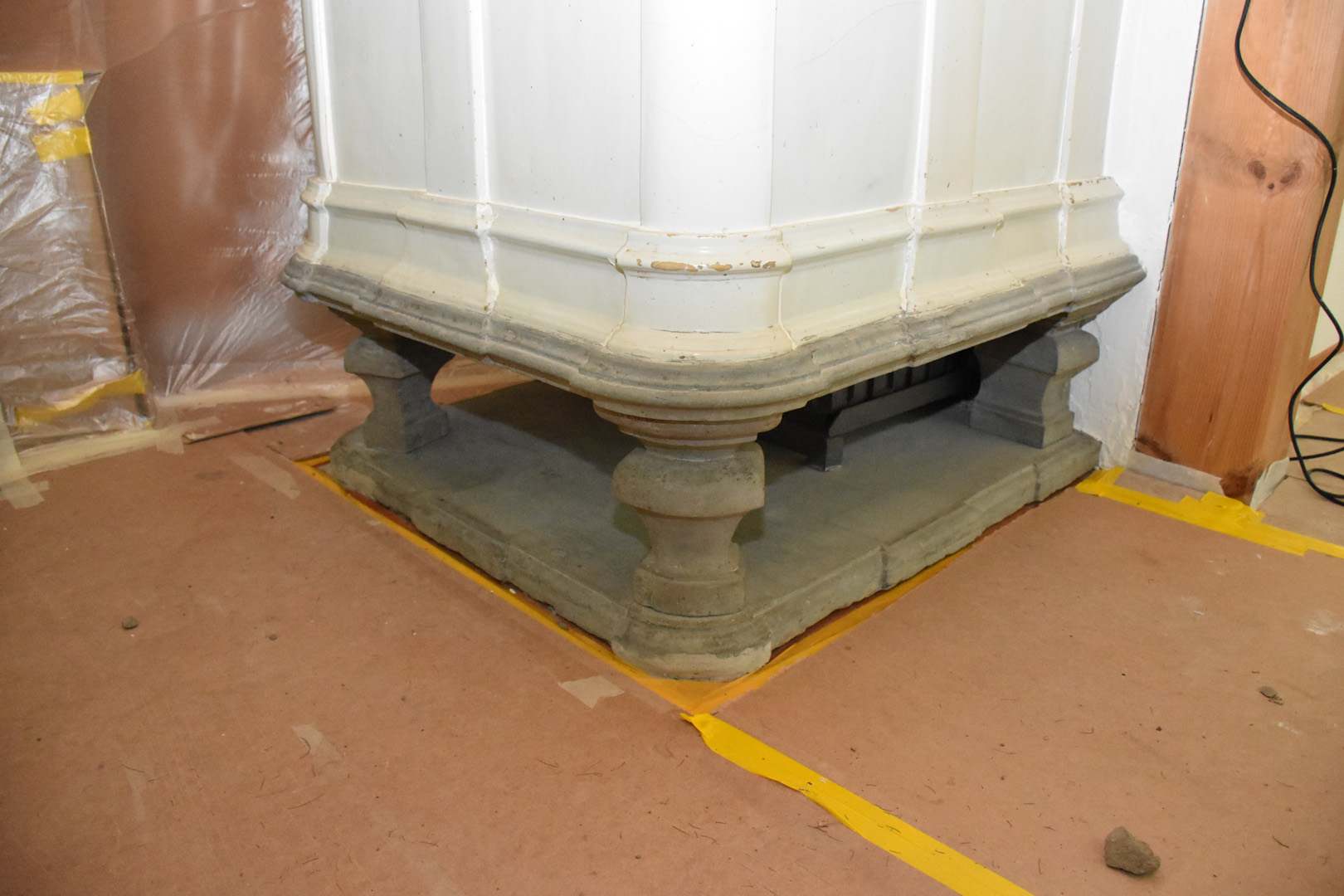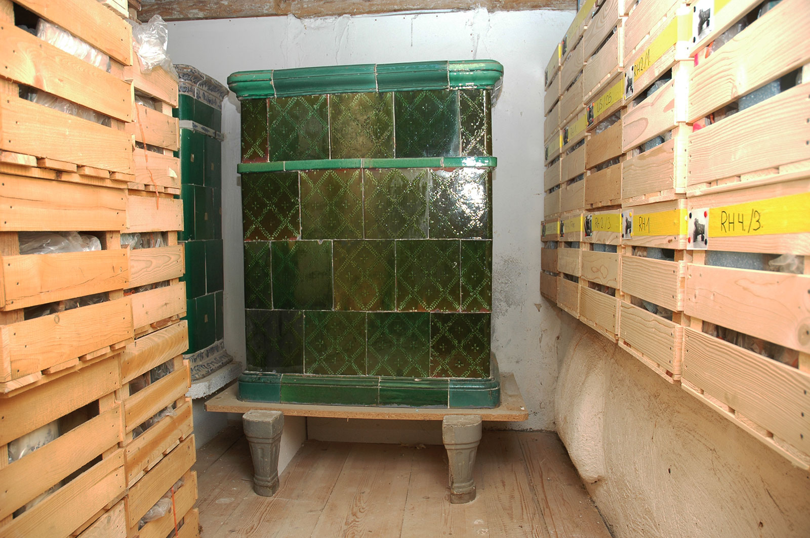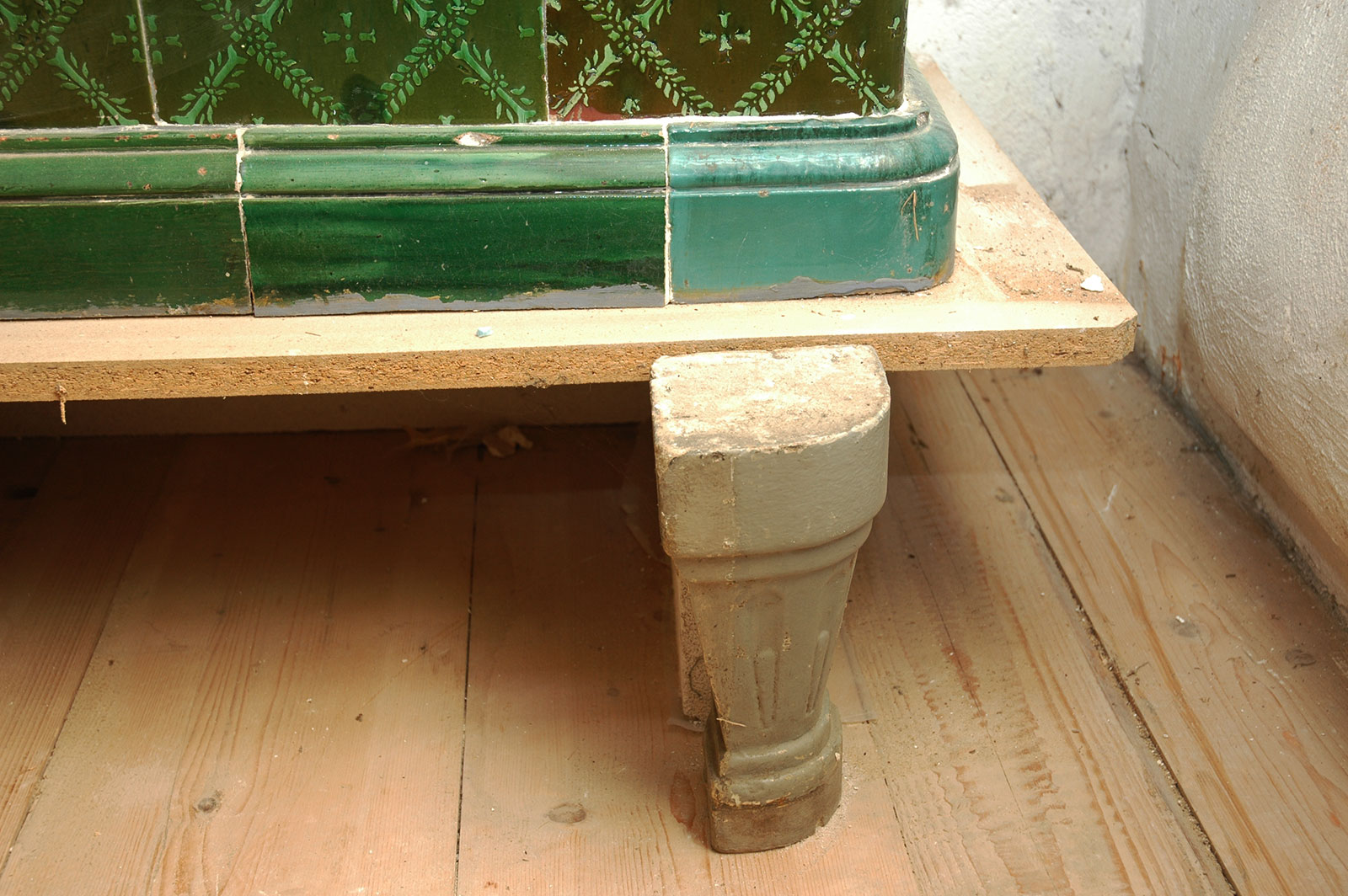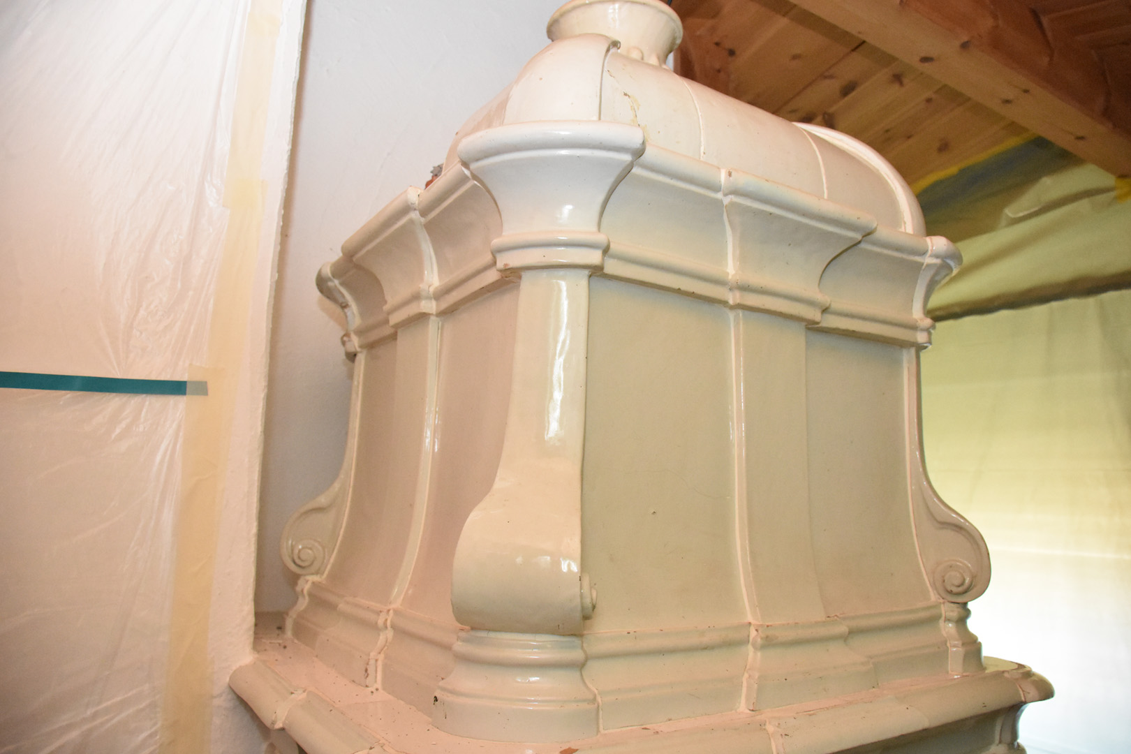 Sehr schöner eleganter Turmofen mit Sandsteinunterbauten, alles Original.