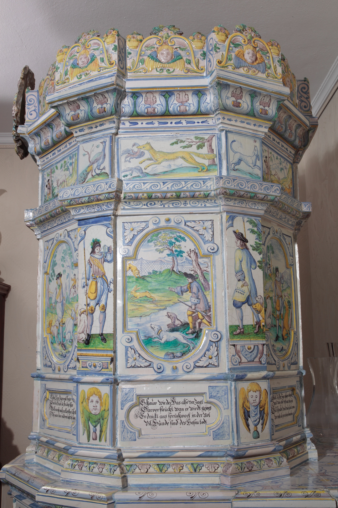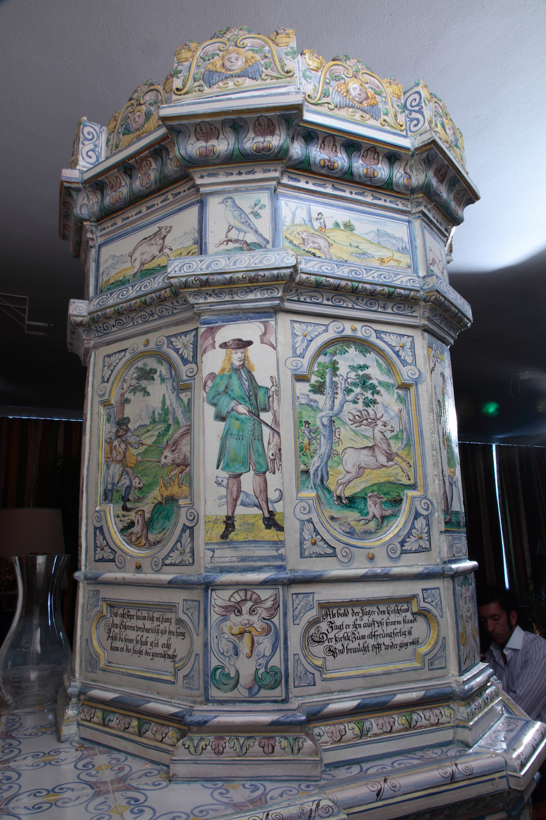 Schöner Turmofen aus einer Villa in Davos; Meissen- Keramik.