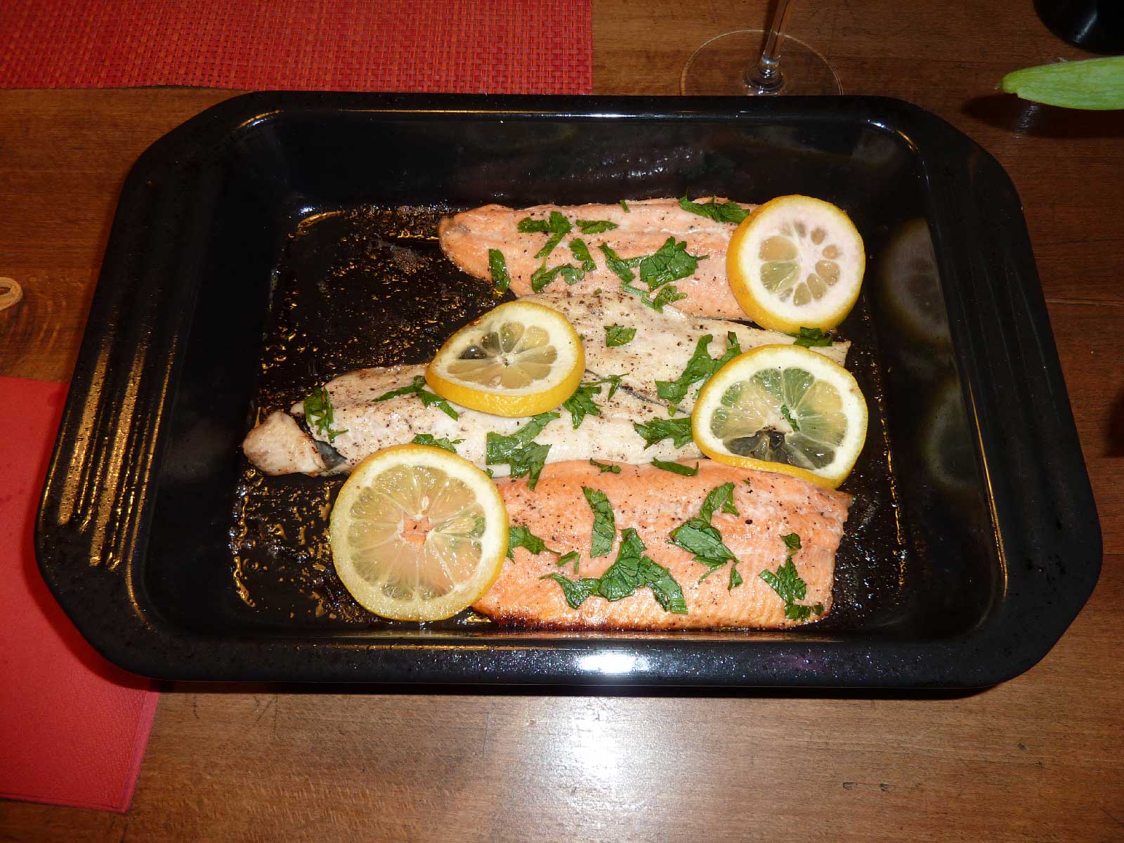 Im Elektrobackofen mit Deckel 30 Minuten backen, ohne Deckel 20 bis 25 Minuten.