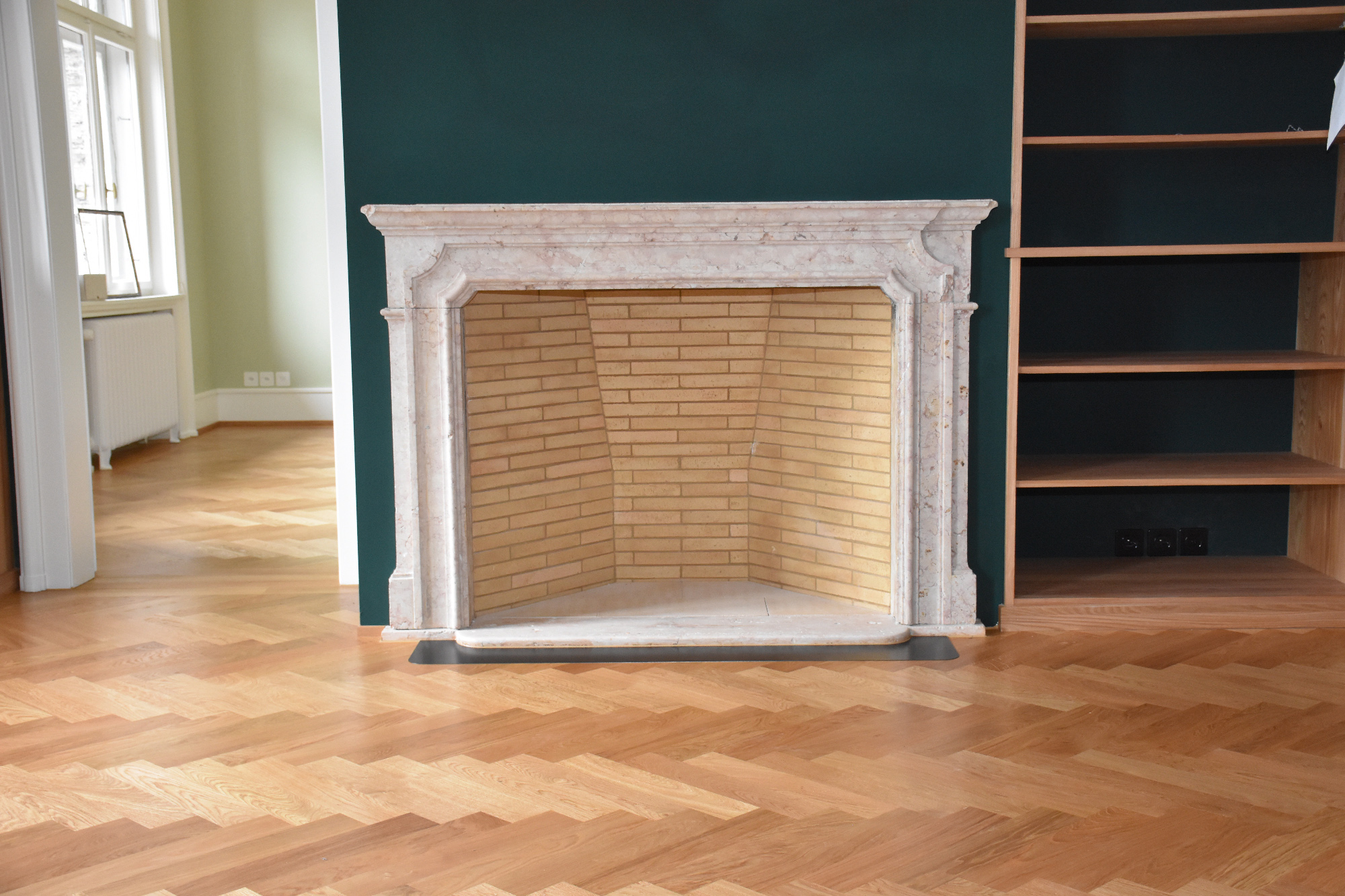 Hier baut Fredi Mathys ein offenes Stil-Cheminée nach Plänen und Berechnungen von Sir Benjamin Tompson Count Rumford. Das Cheminée hat perfekte Proportionen und ist voll funktionsfähig.