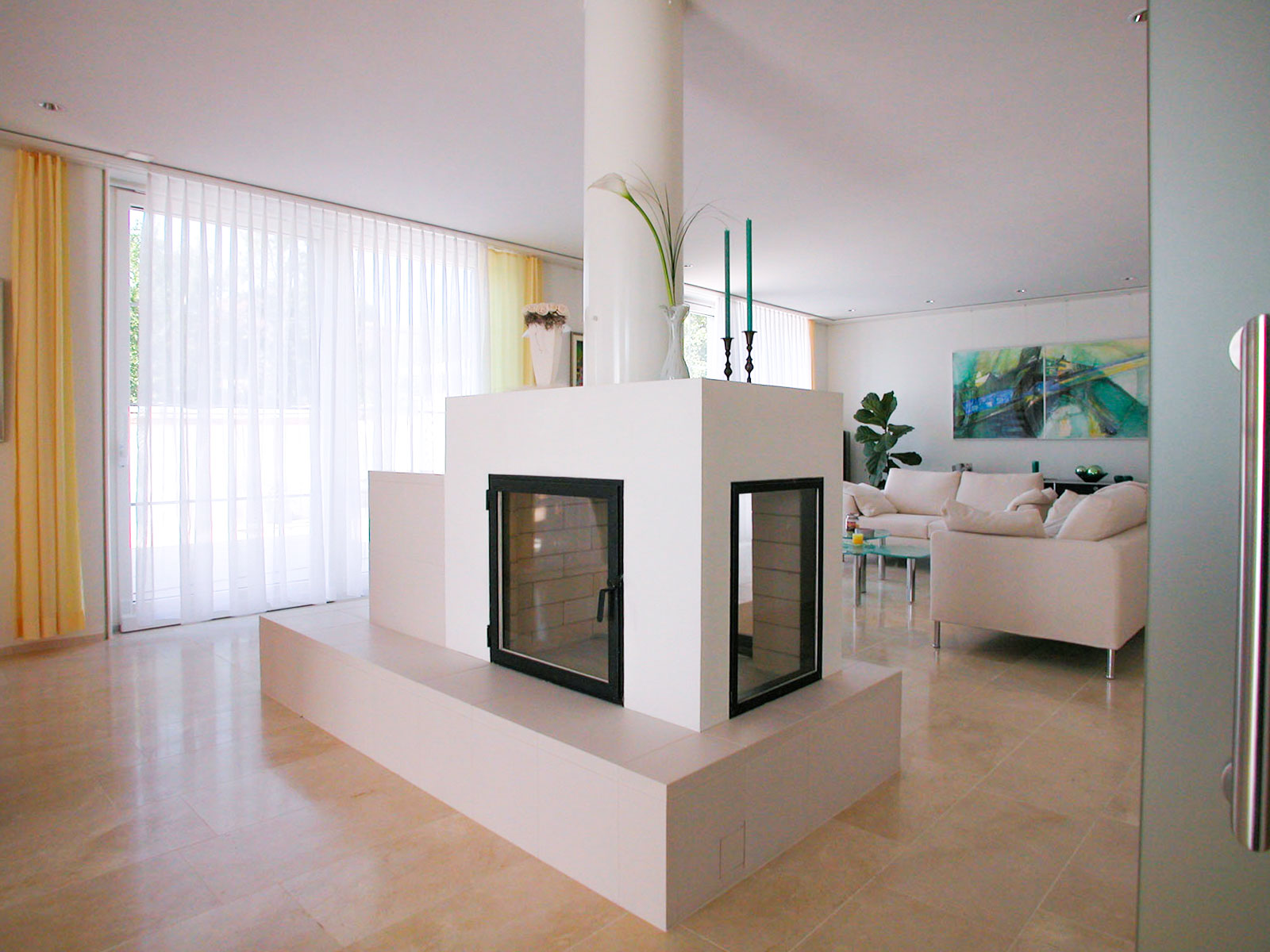 Wenn Sie sich für ein offenes Cheminée entscheiden, sollte die Raumheizung nicht im Vordergrund stehen. Ein offenes Cheminée erzeugt im Gegensatz zu einem Kachelofen deutlich weniger Wärme. Das Cheminée zaubert Ihnen aber ein einzigartiges Ambiente in den Wohnraum und sorgt für ein besonderes Erlebnis. Das knisternde Feuer im Cheminée sorgt für entspannte, ruhige und gemütliche Abende.