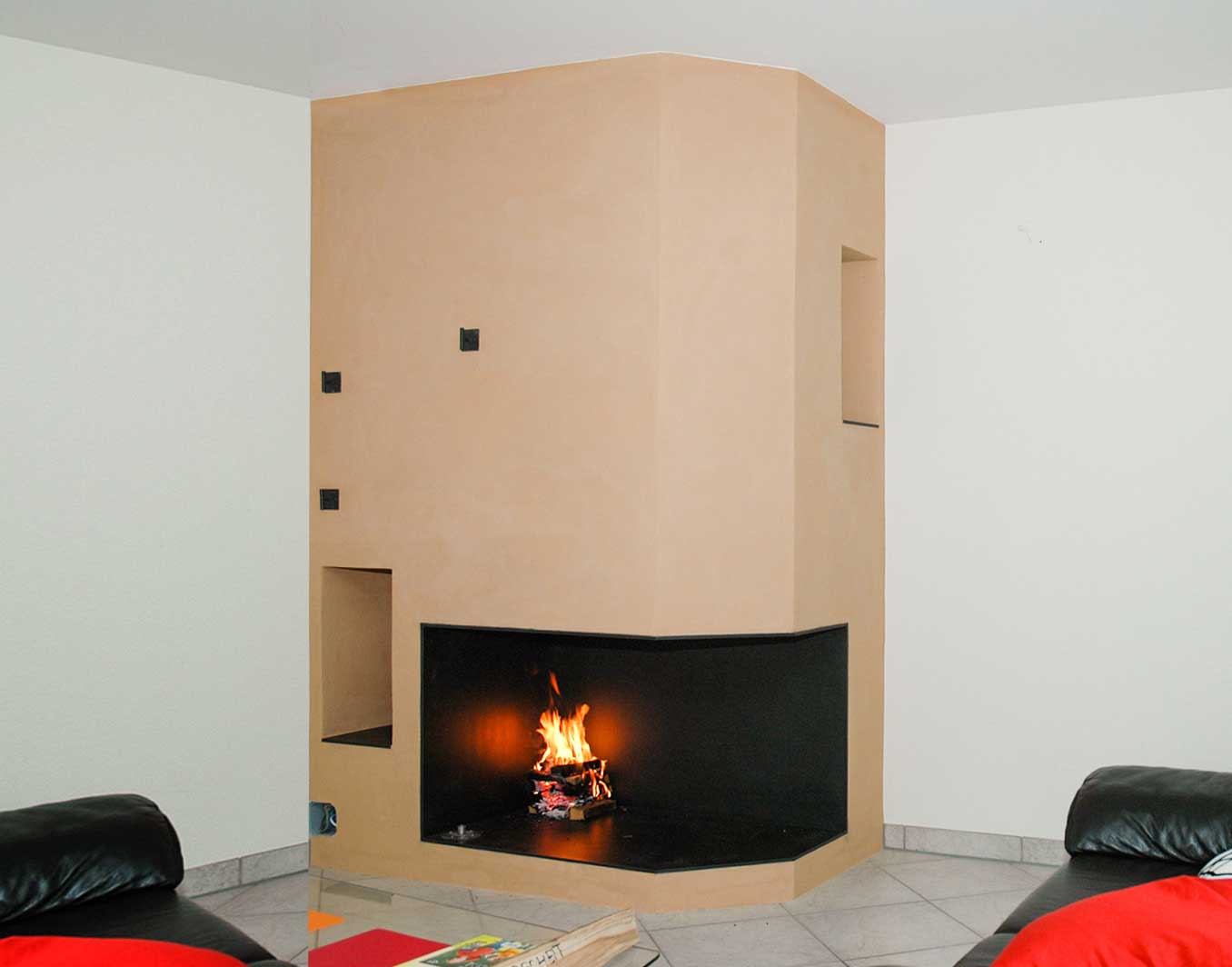 Gut zu wissen: Ein offenes Cheminée, welches in die Jahre gekommen ist, kann von Fredi Mathys oftmals mit einfachen Eingriffen wie einem neuen natürlichen Verputz oder einer zusätzlichen Verkleidung gestalterisch der Zeit oder Ihren Wünschen angepasst werden.