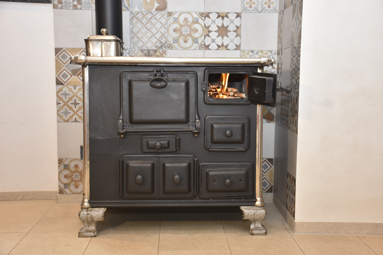 Ein Holzkochherd ist mehr als nur eine Kochgelegenheit – er ist ein wertvolles Stück Handwerkskunst und verleiht Ihrer Küche Wärme und Atmosphäre. Bereits kurz nach dem Einfeuern verbreitet der antike Ofen eine angenehme Strahlungswärme, die den Raum gemütlich macht.