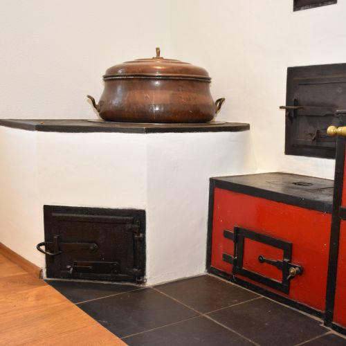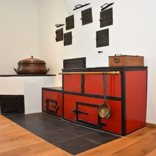 Ein antiker Holzkochherd mit Stahlmantel, Reelingstange, Schiebern, Klappen und zahlreichen Türchen mit Messingknöpfen ist ein echtes Küchen-Schmuckstück. Er findet meist in der Küche seinen Platz und vereint praktische Funktionen mit historischer Ästhetik:
