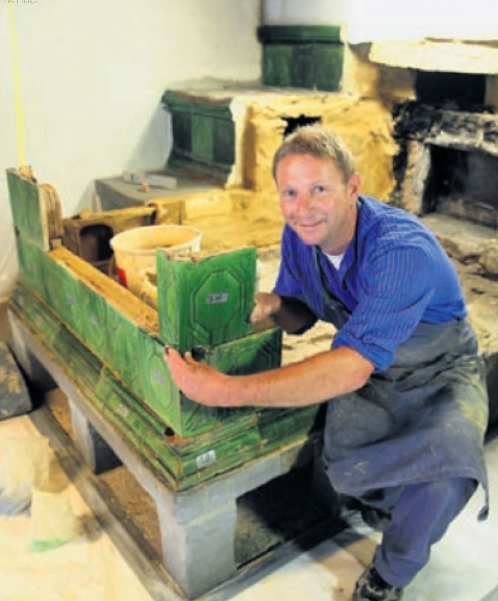 Fredi Mathys bei der Restauration des historischen Turmofens im Kloster Müstair Aus dem Kloster Müstair Wer erinnert sich noch an den alten farbige…