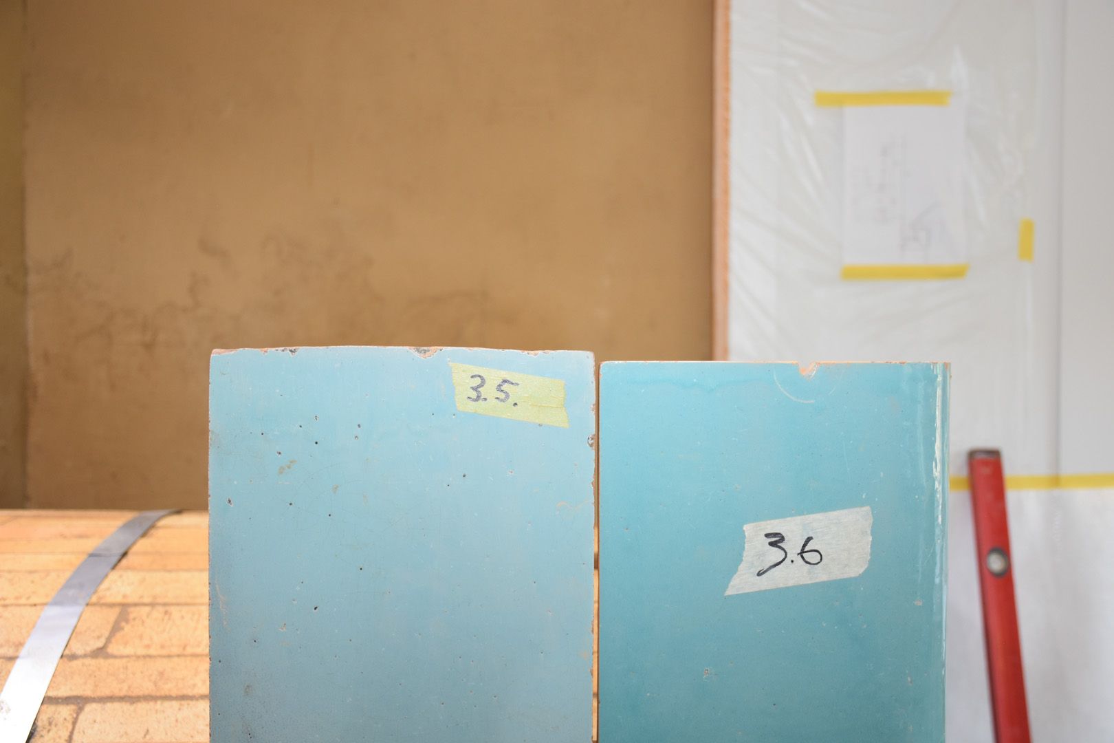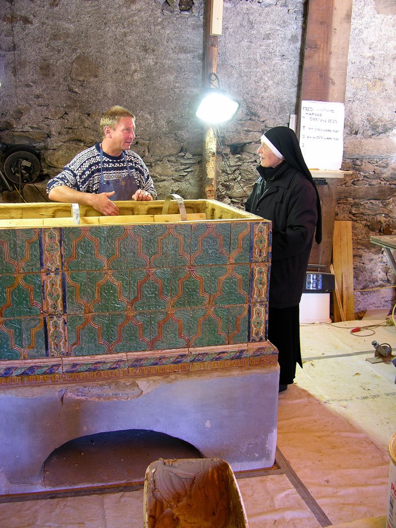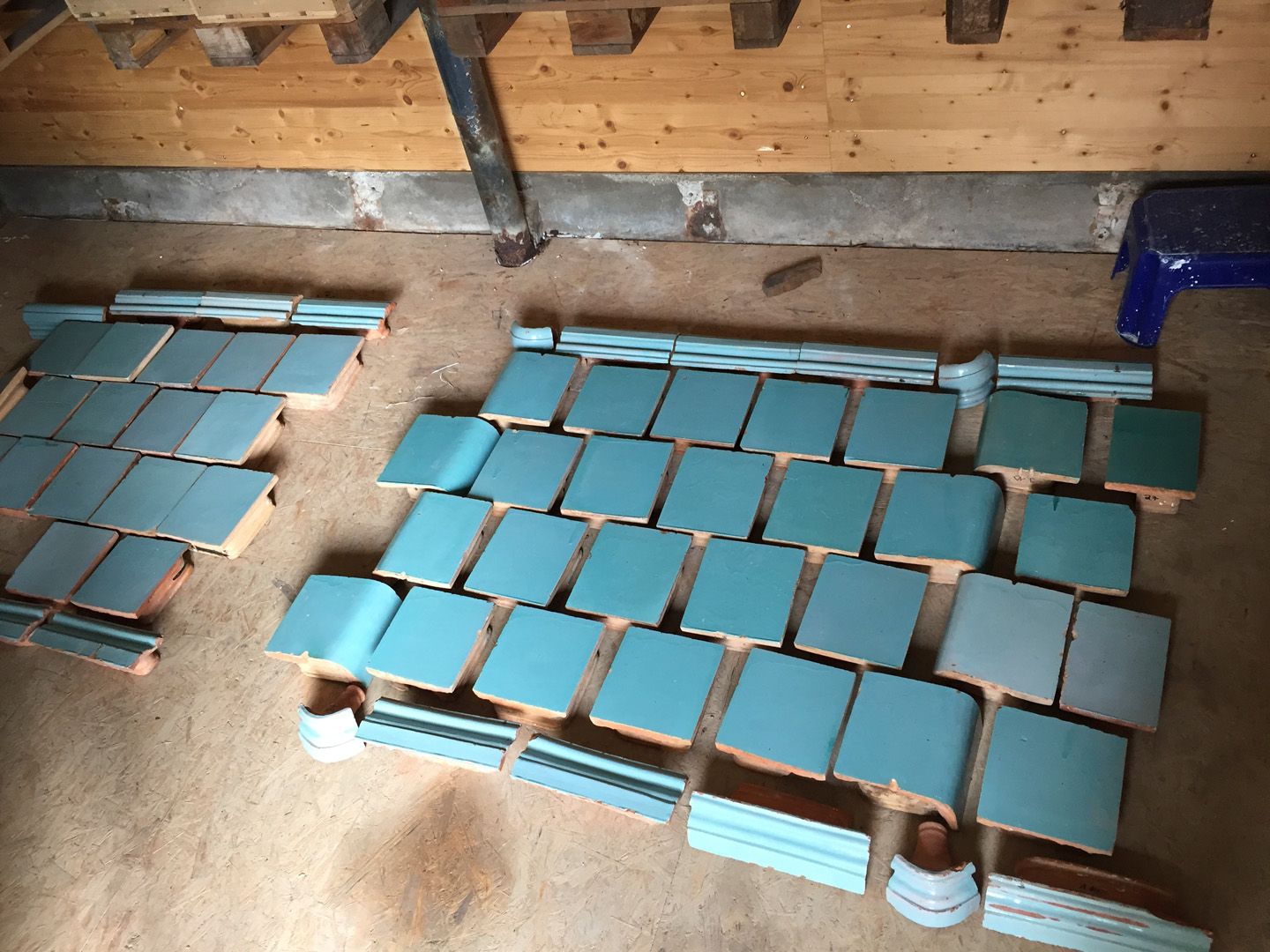 Die Kacheln sollten nur mit Wasser in Berührung kommen. Durch das Einweichen lösen sich jahrhundertealter Lehm und Verschmutzungen, sodass die Kacheln mühelos gereinigt werden können.