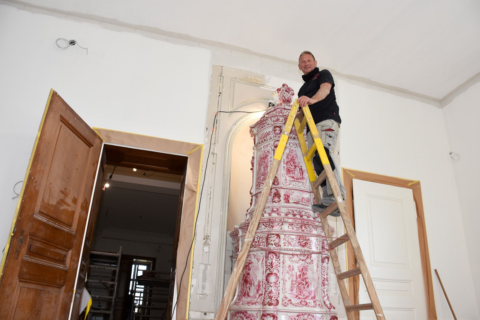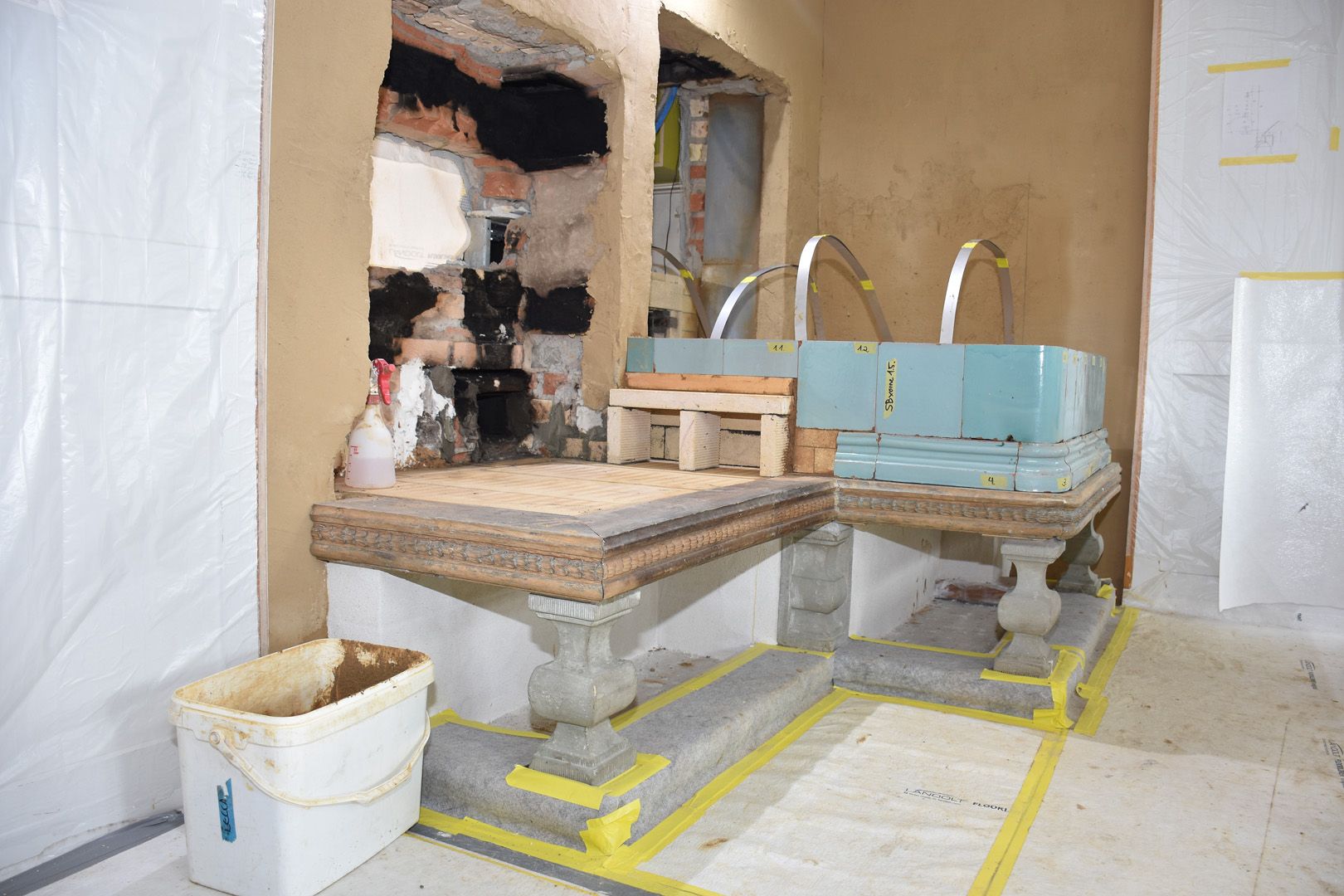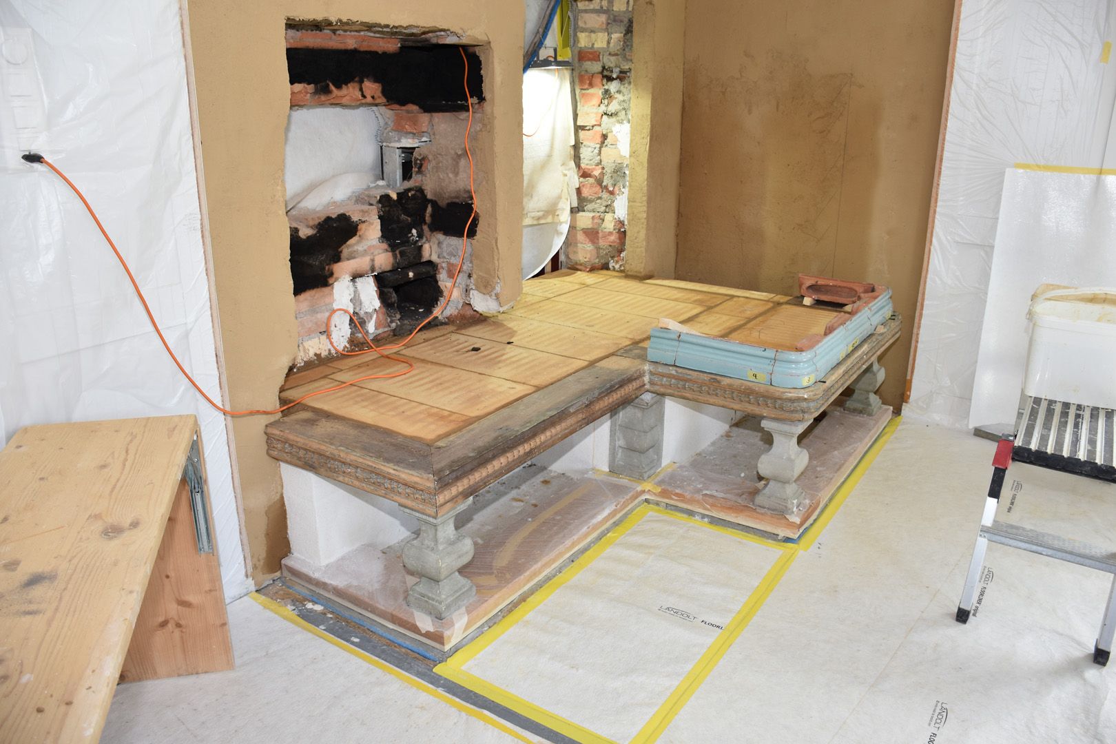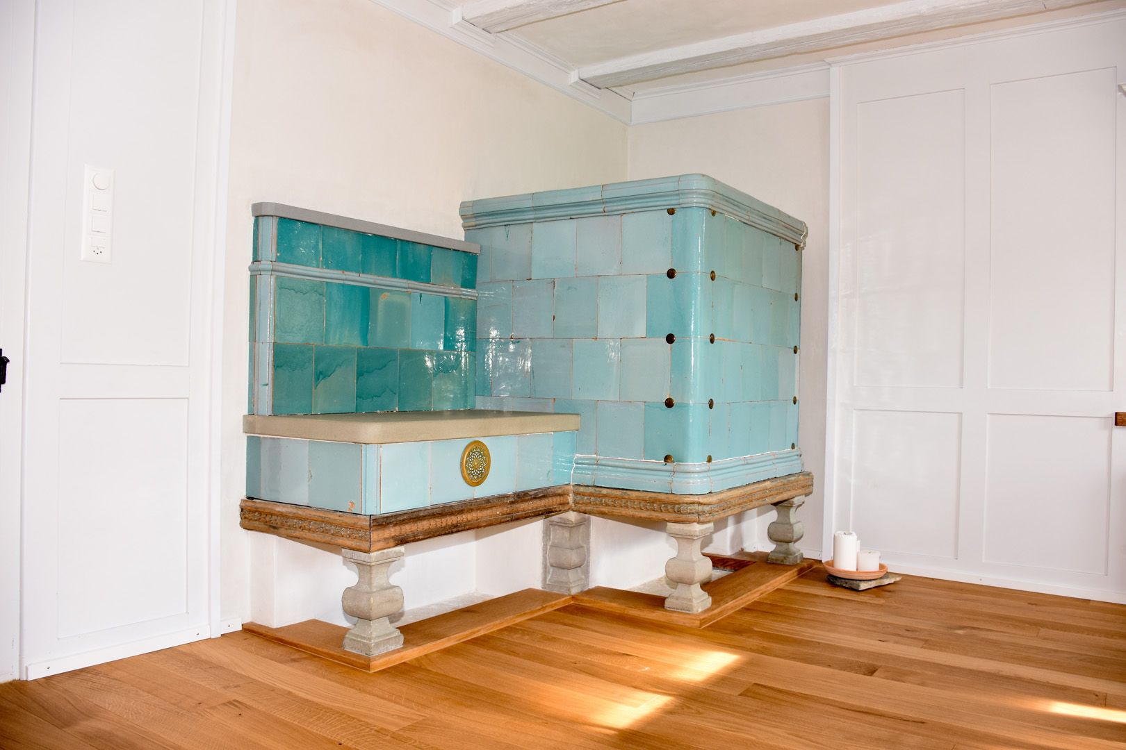 So bleibt die historische Integrität erhalten, während der Kachelofen wieder voll funktionsfähig und optisch ansprechend ist.
